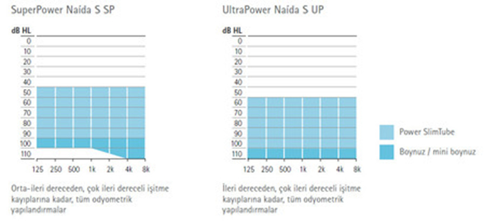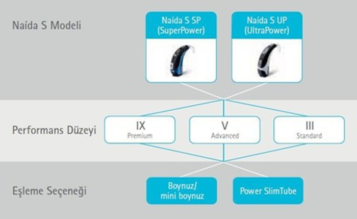 Naída S portföyü, orta-ileri dereceden, çok ileri dereceli işitme kayıplarına kadar çözüm sağlar. Klasik Naída tasarımı, Super Power (SP) ve UltraPower (UP) modelleri sunar. Naída S, bireysel gereksinimleri karşılayacak kapsamlı fakat basit seçenekler içerir ve üç farklı performans ve fiyat düzeyinde sunulur. İdeal bir dünyada herkes en küçük işitme cihazına sahip olmayı ister. Ancak ileri derecede işitme kaybı olan kişiler için farklı bir çözüm üretmek gerekir. Bu çözüm Naída S UP'dir.